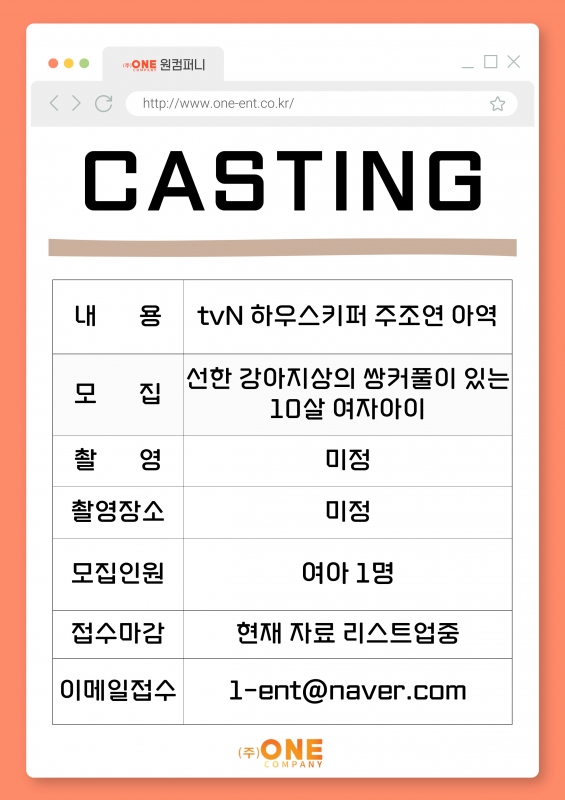[캐스팅공지]tvN 방영예정 드라마 아역 캐스팅공고
